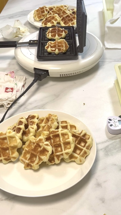 発酵の間にベルギーワッフルを焼いていただきました