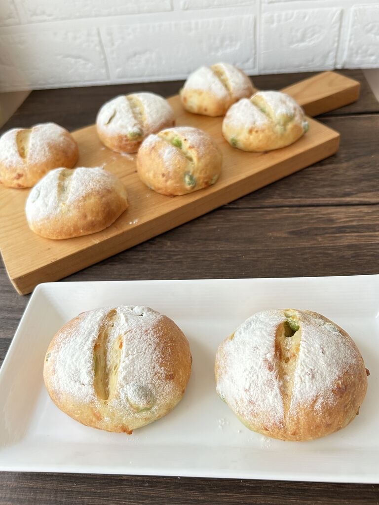 豆腐入りの枝豆・チーズパン焼けて