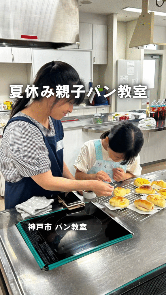 夏休み特別企画「親子パン教室」を明石のキッチンスタジオで開催しました!親子で一緒に、こねるところからパン作りを体験していただきました 小さな手で一生懸命こねる姿、丸めるときの真剣な表情 焼きたてパンに顔を描いたり そして焼き上がったときの嬉... -